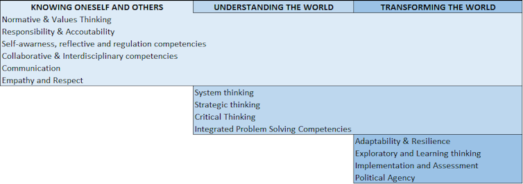 Indeed, the skills are already known. Academic literature (e.g., Redman and Wiek (2021), Moosmayer et al. (2020) or Lozano and Barreiro-Gen (2021)) as well as international reports, including those of the European Union, Unesco or the OECD, have been converging for several years on a clear set of competencies.
